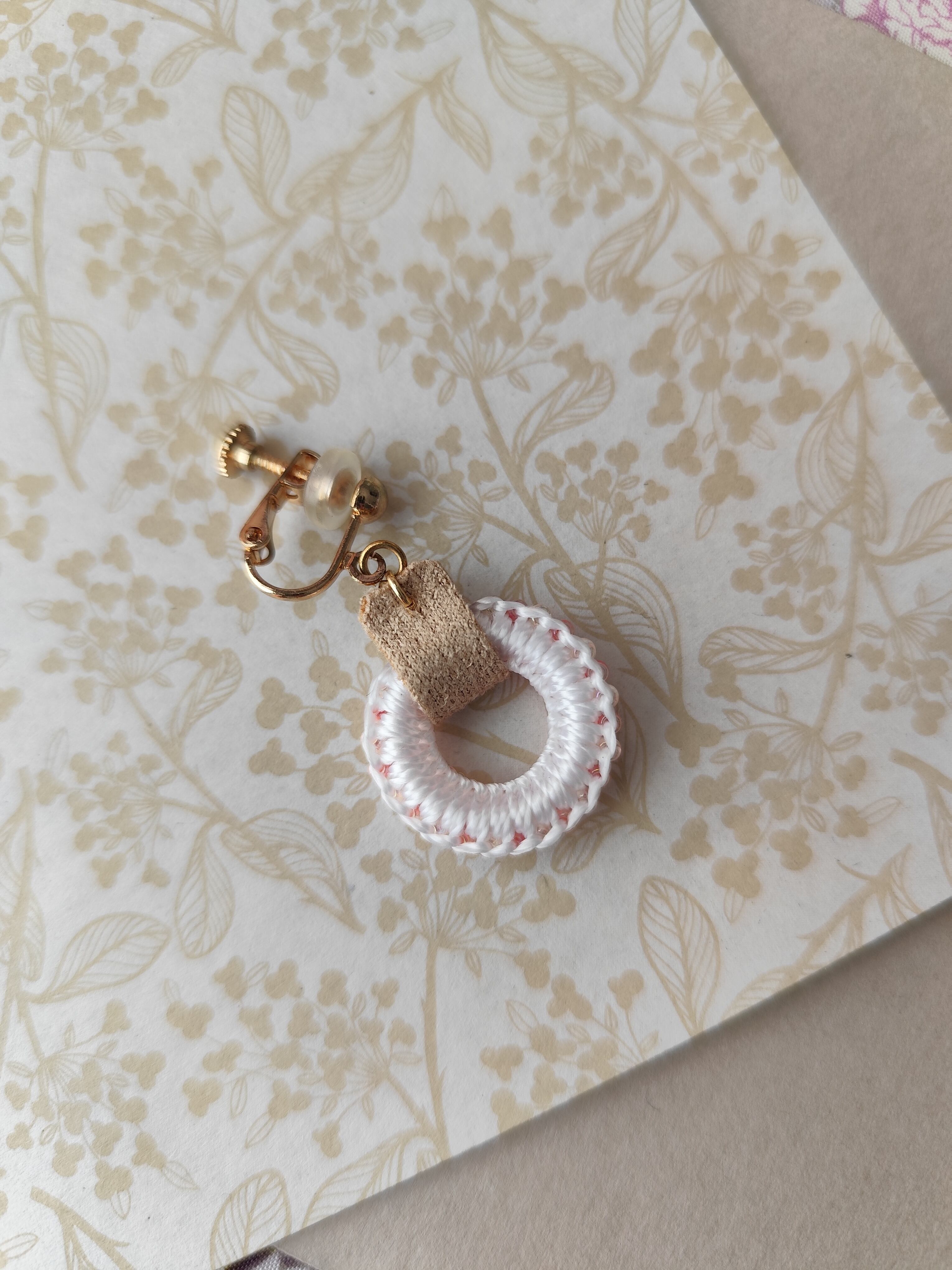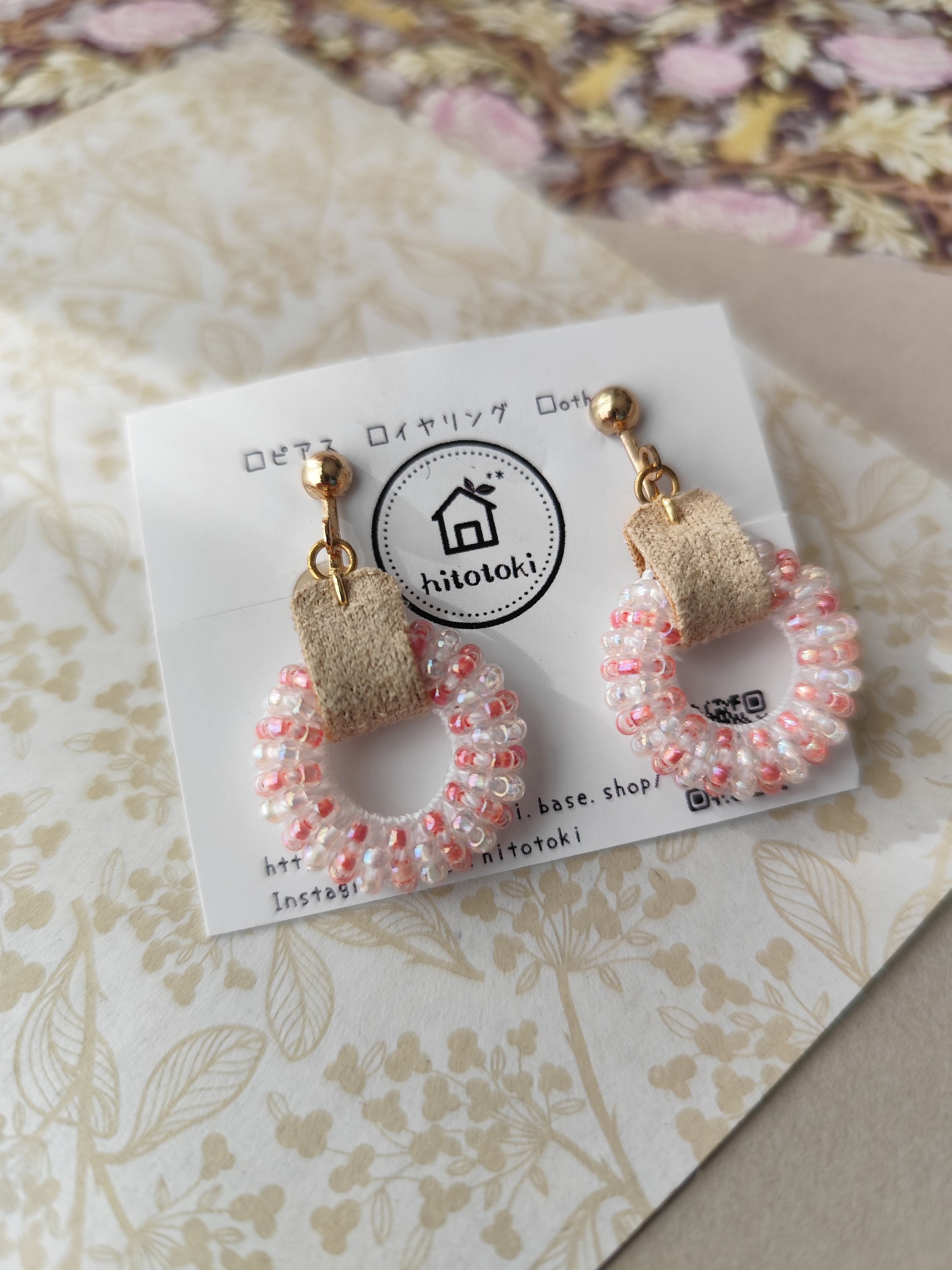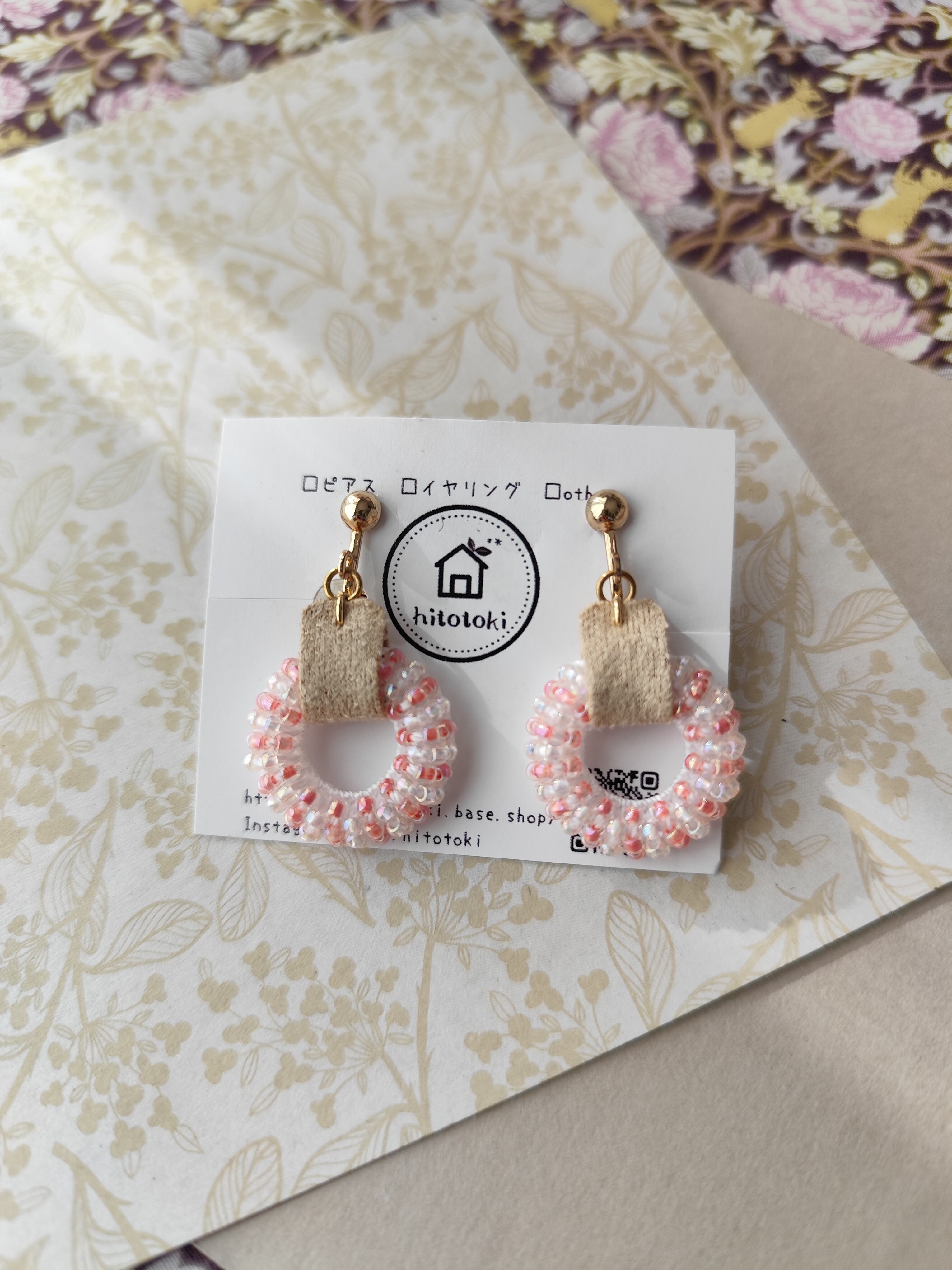 ビーズでできたつぶつぶのリースみたいな耳飾りです。