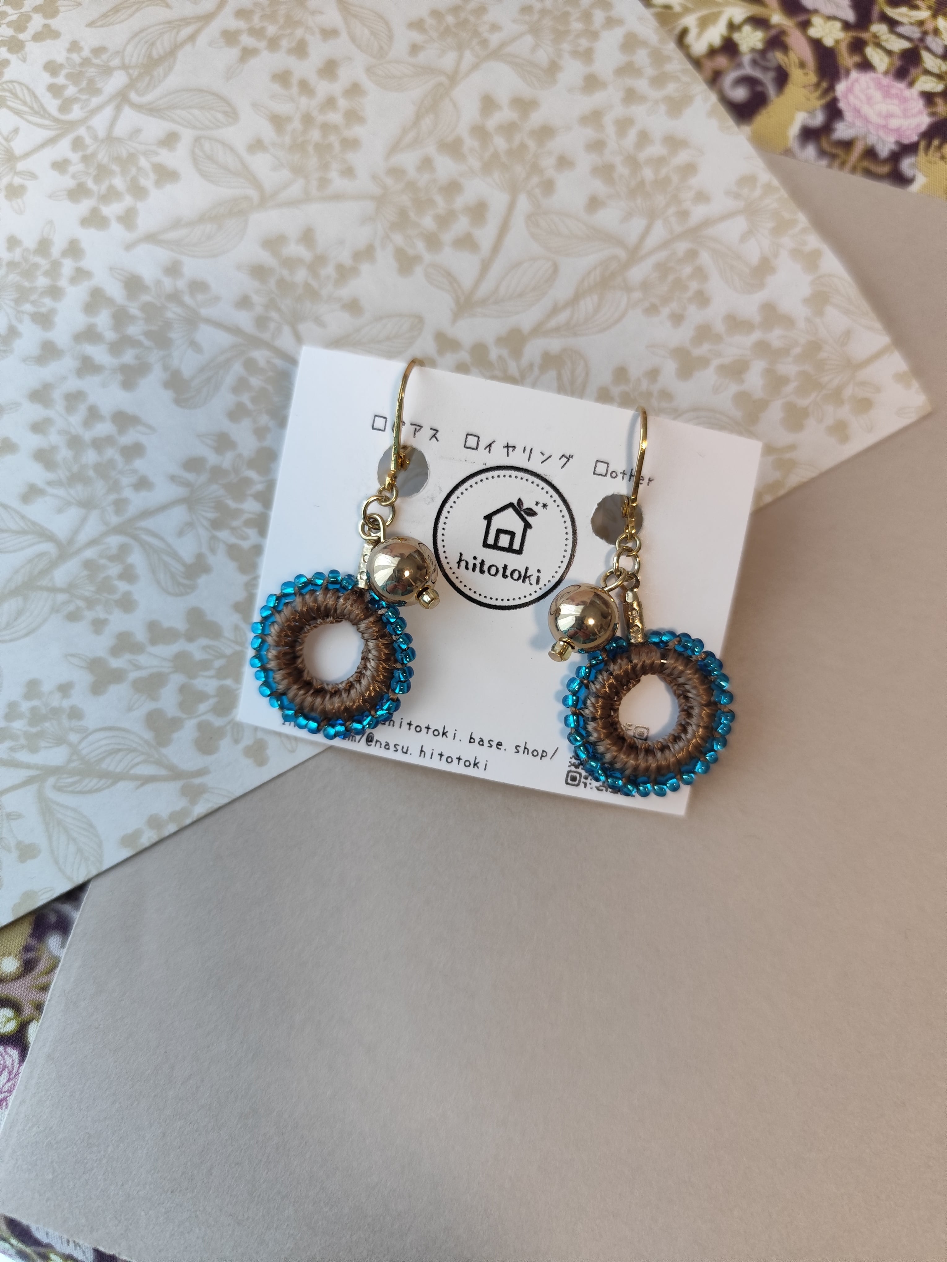 小さめわっかとメタルビーズが揺れる耳飾りです。