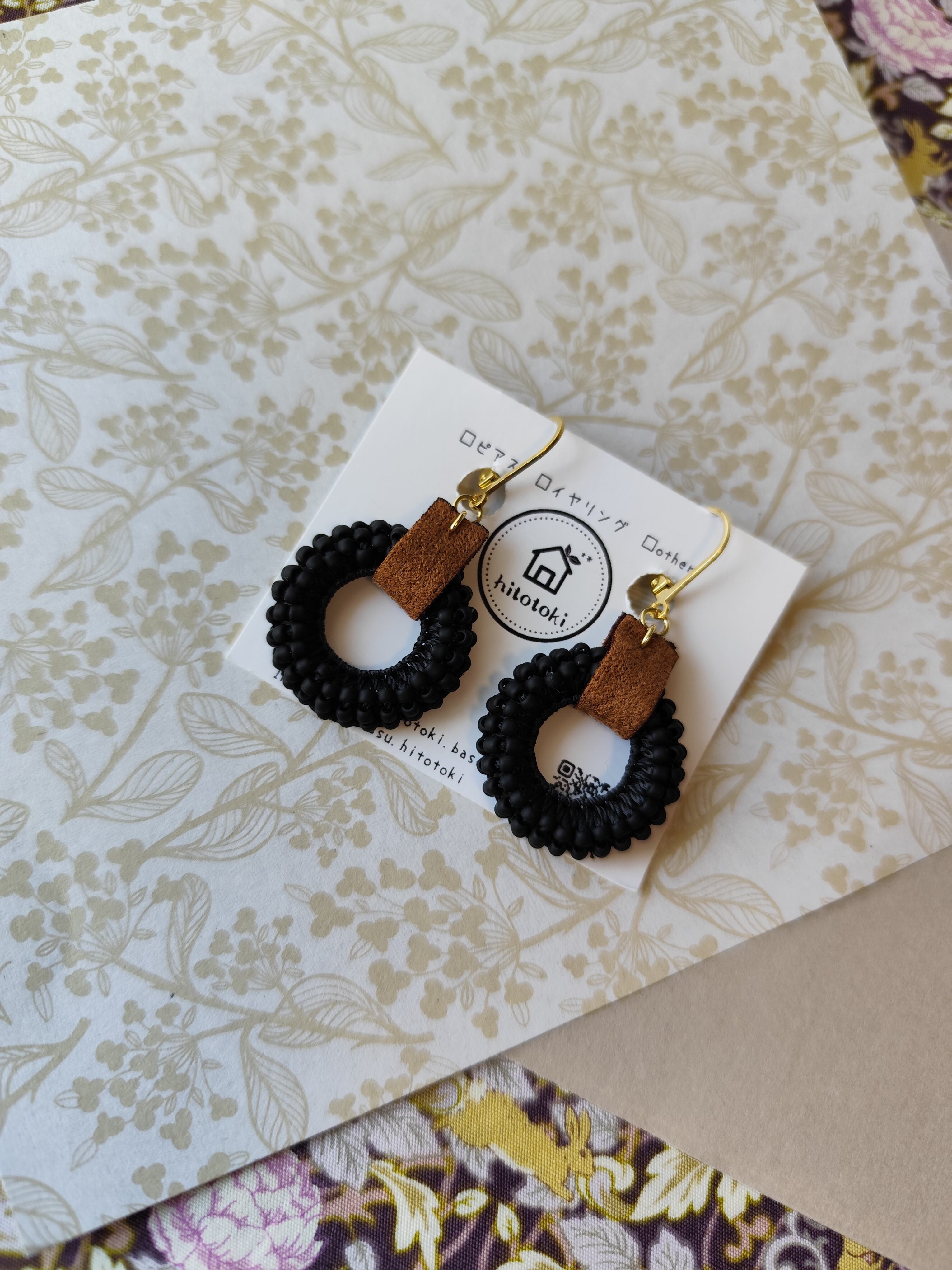 ブラックの糸にマットブラックのビーズを合わせたお洋服とのコーディネートがしやすいデザインです。