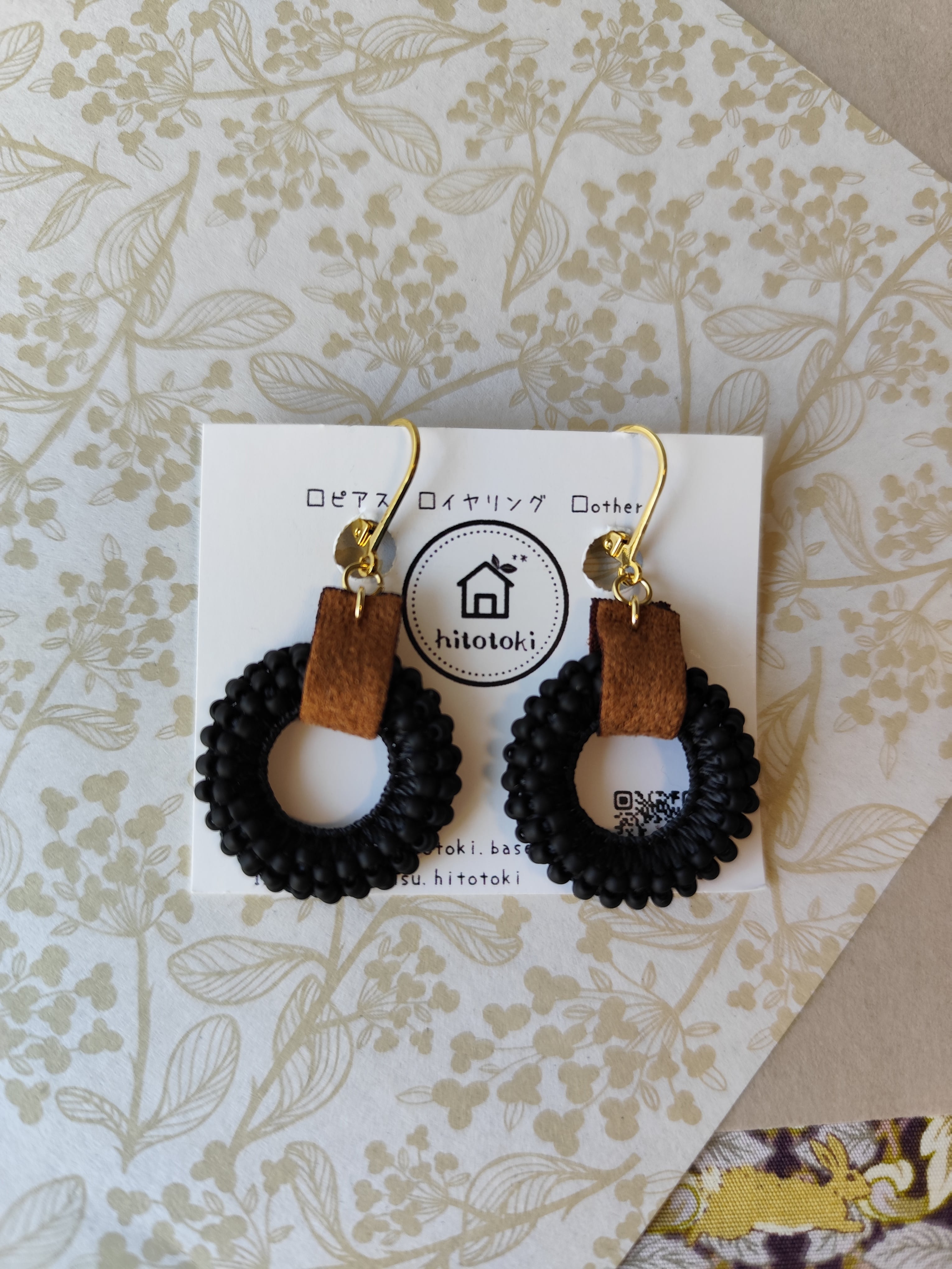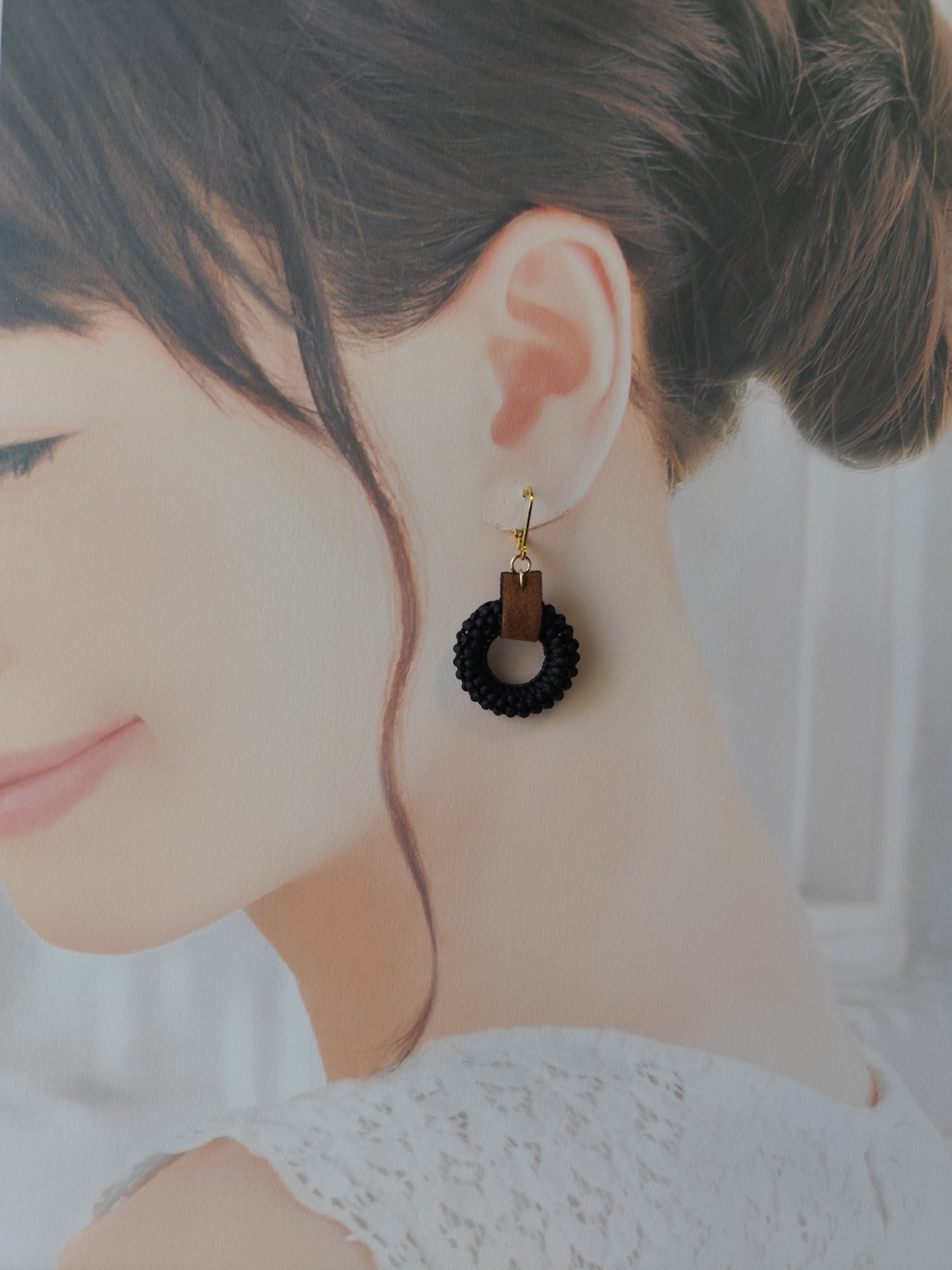 ビーズでできたつぶつぶのリースみたいな耳飾りです。