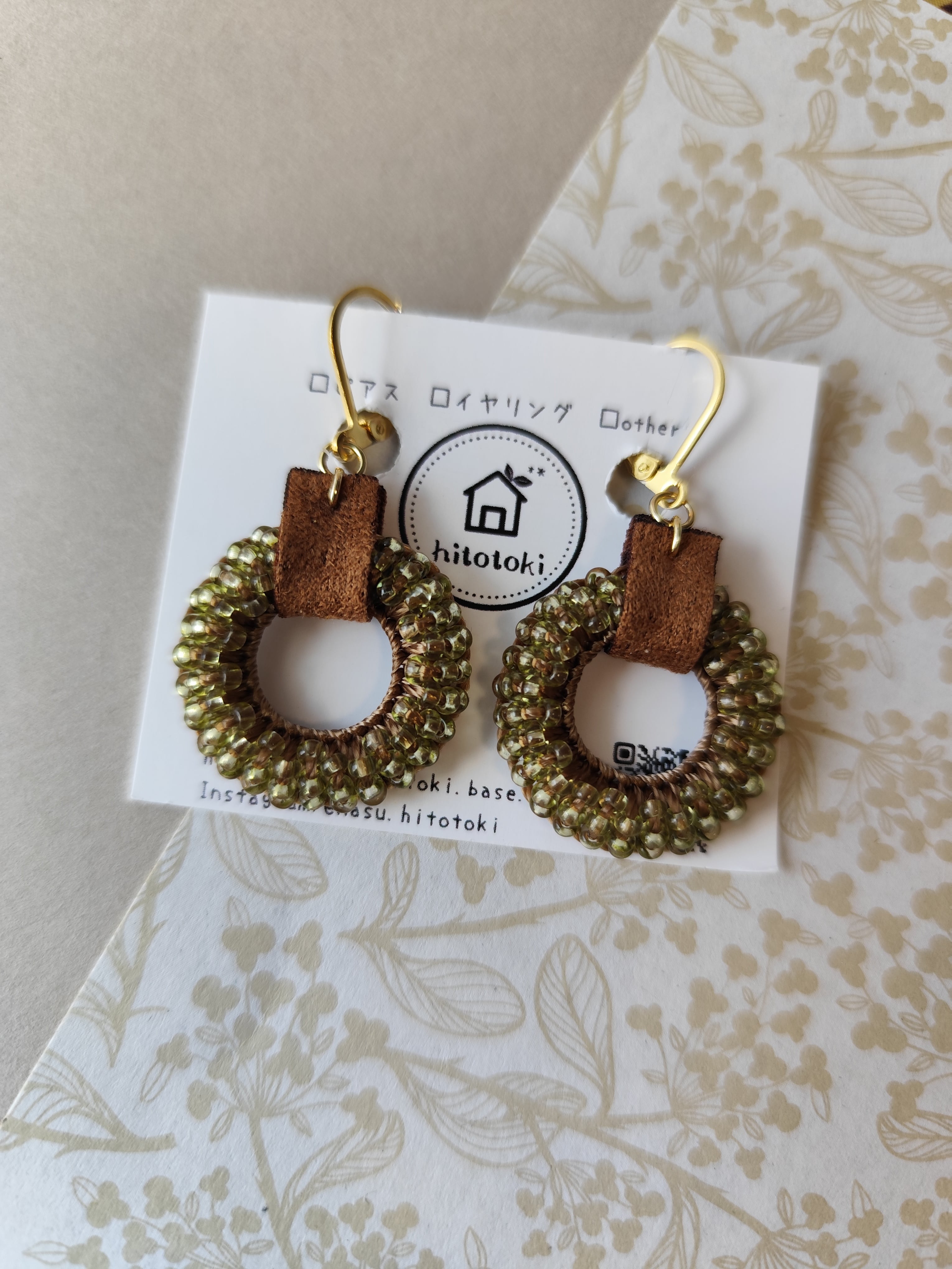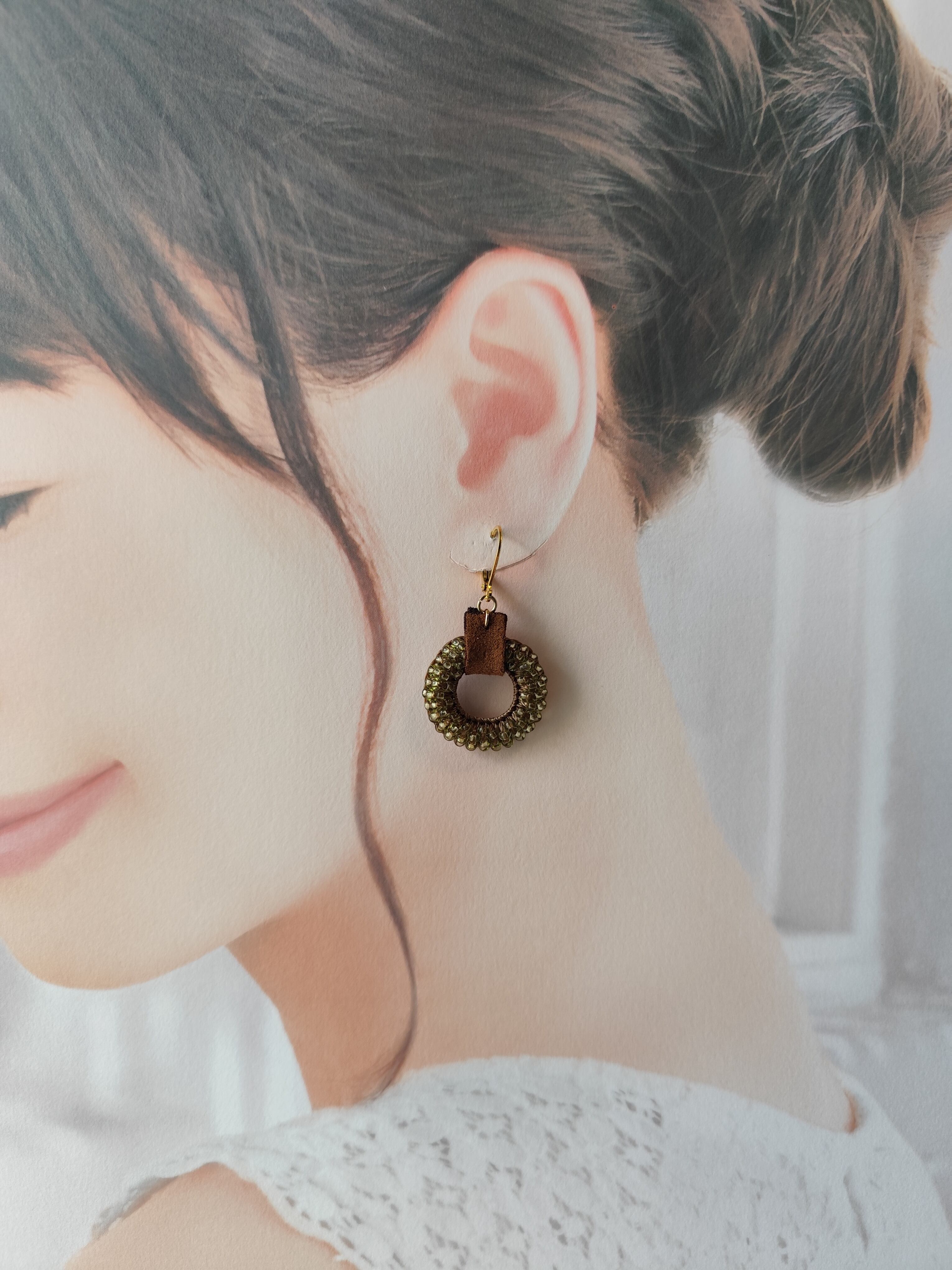 ビーズでできたつぶつぶのリースみたいな耳飾りです。