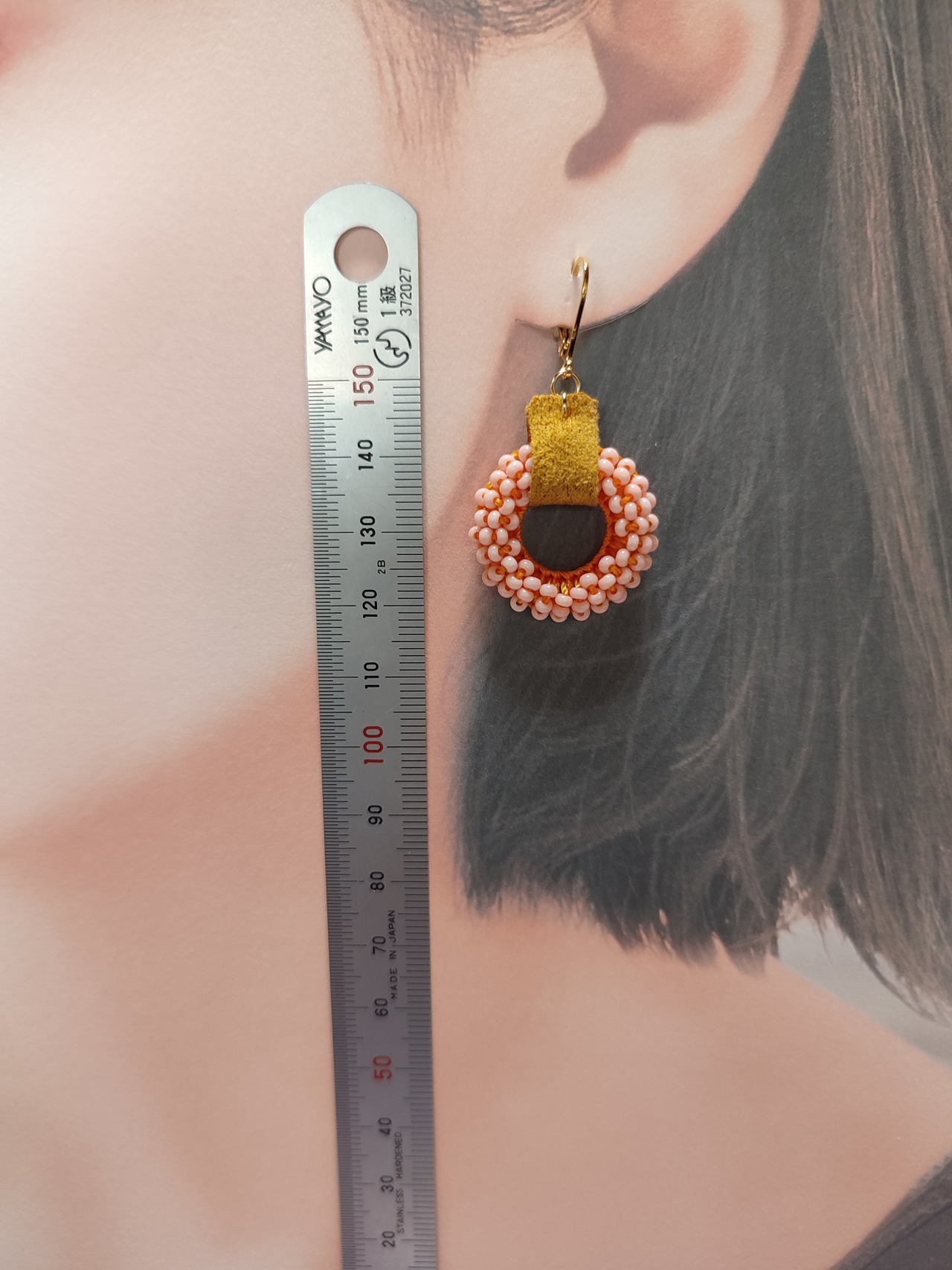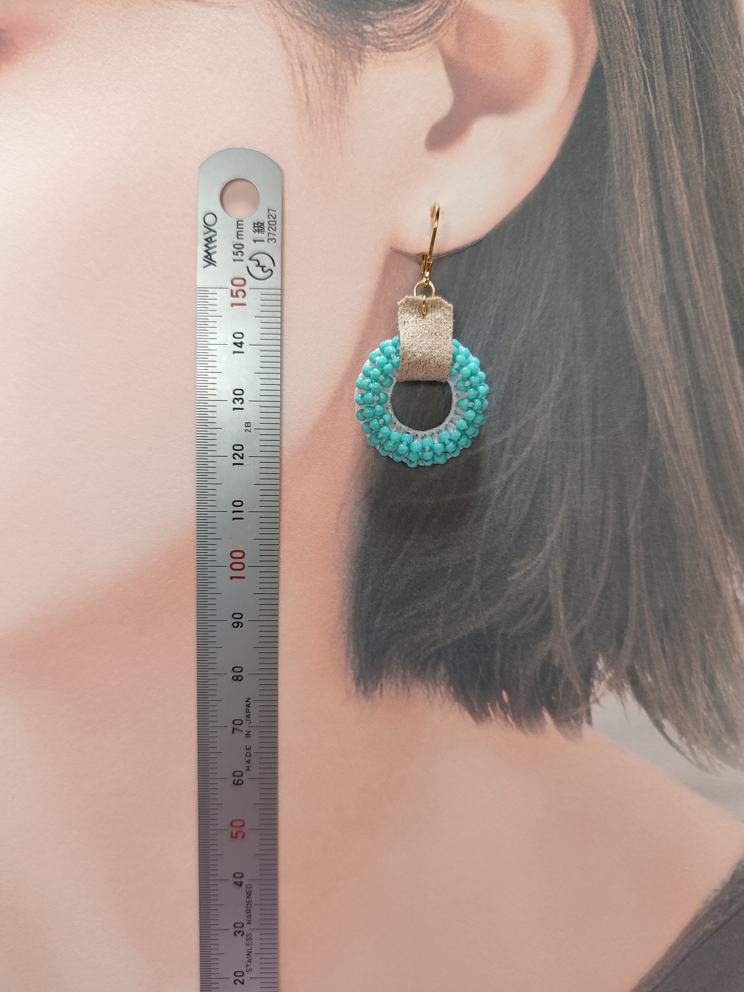 ビーズでできたつぶつぶのリースみたいな耳飾りです。